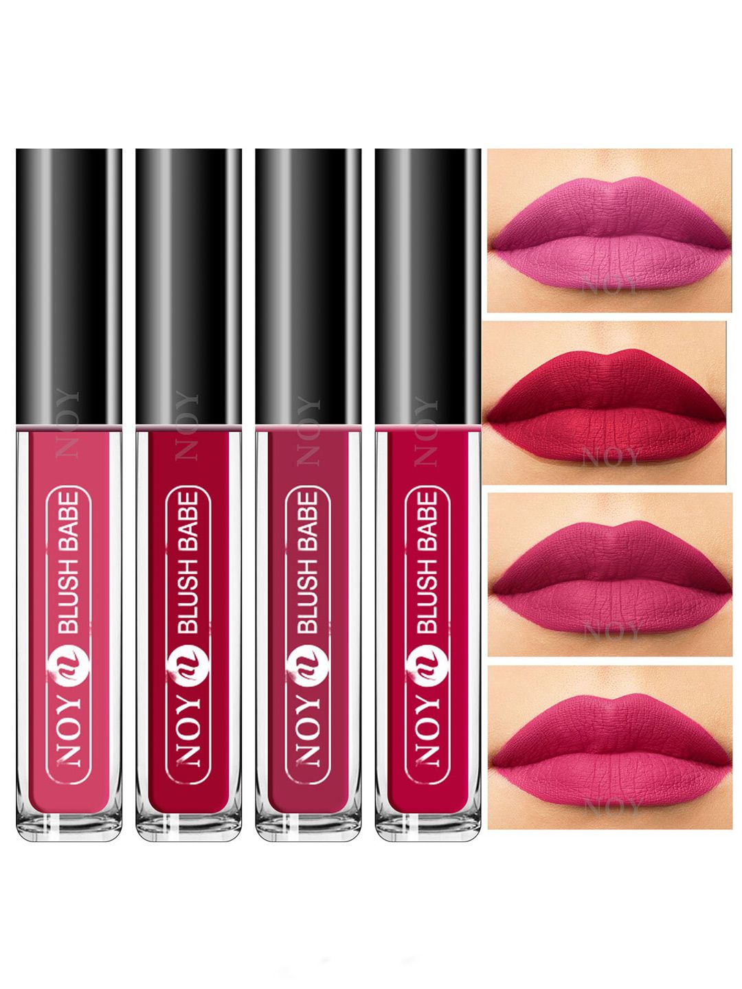 NOY Set Of 4 Blush Babe Waterproof Liquid Matte Lipsticks 4ml Each- Shades 02+ 03+ 06+ 08