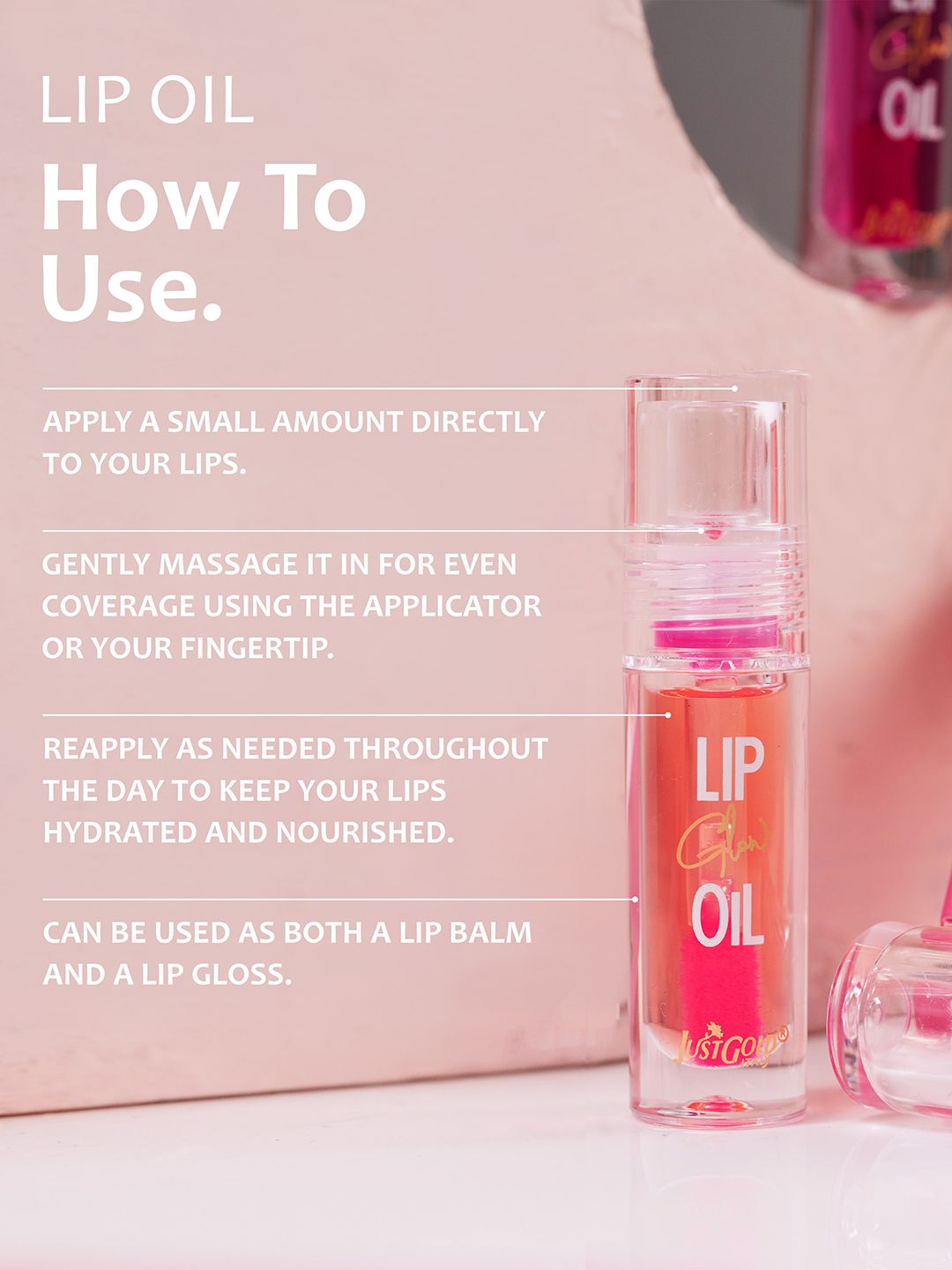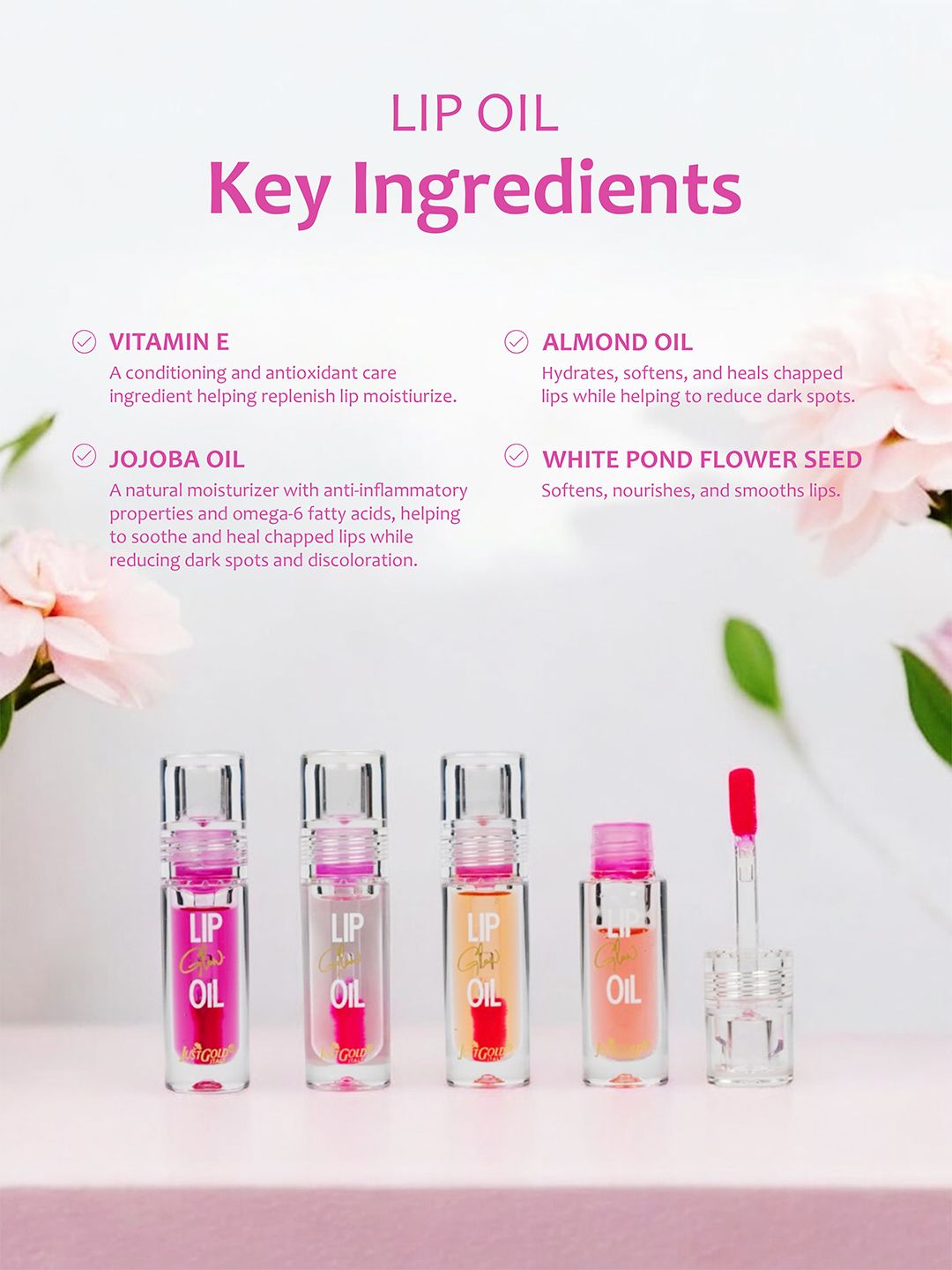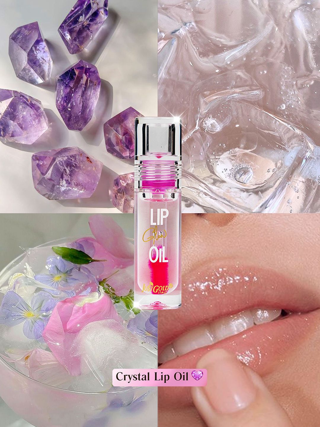 JUSTGOLD Long Lasting Lip Glow Oil With Vitamin E & Jojoba Oil - 4 ml - Crystal - 01
