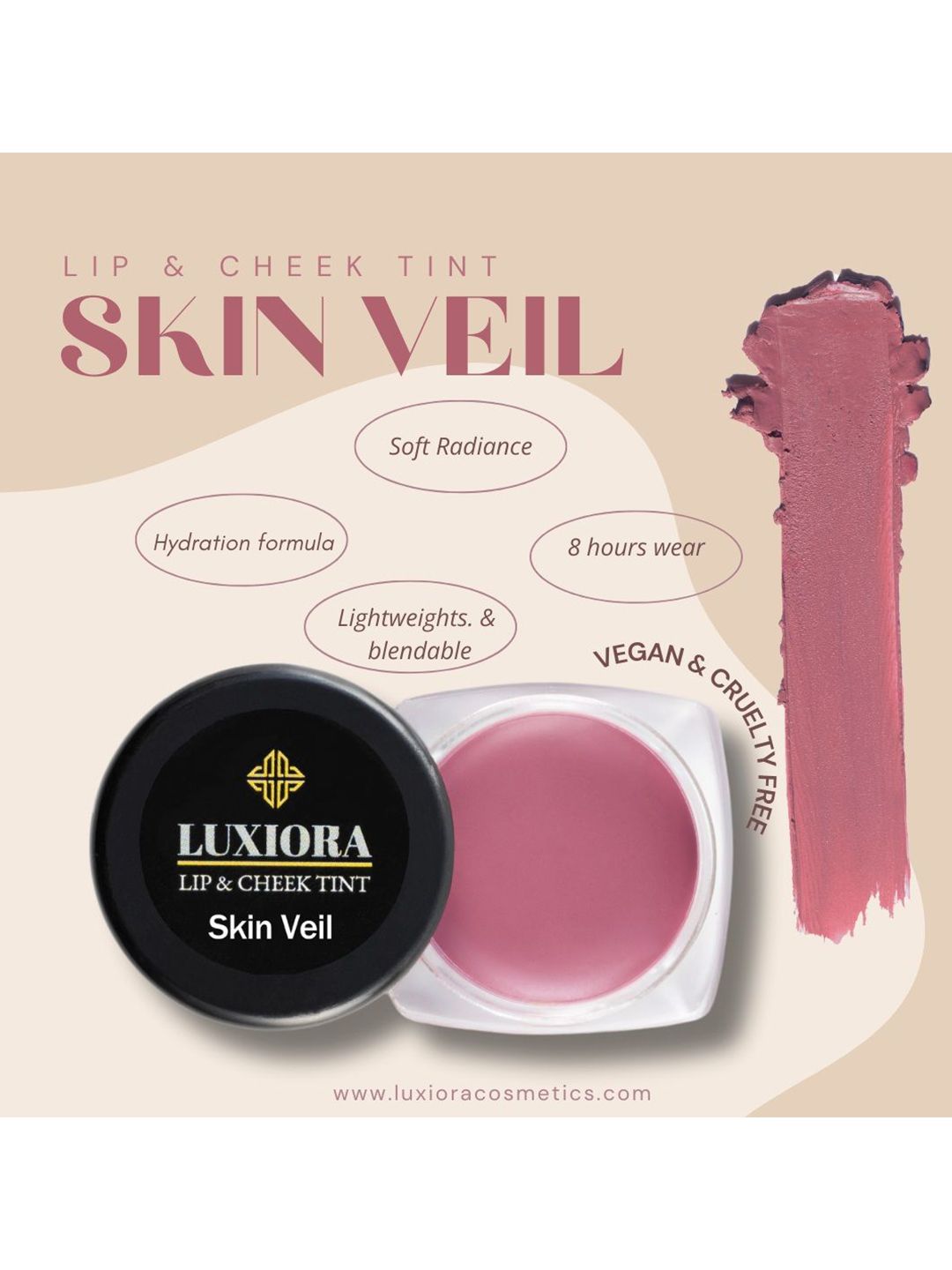 Luxiora Cosmetics Lip & Cheek Tint With Vitamin E - Skin Veil