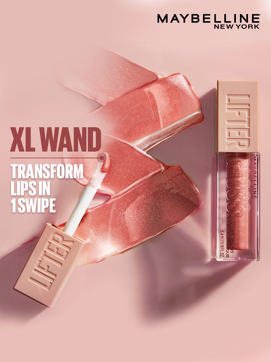 Maybelline New York Non-Sticky Tinted Lifter Lip Gloss with Hyaluronic Acid 5.4ml - Petal