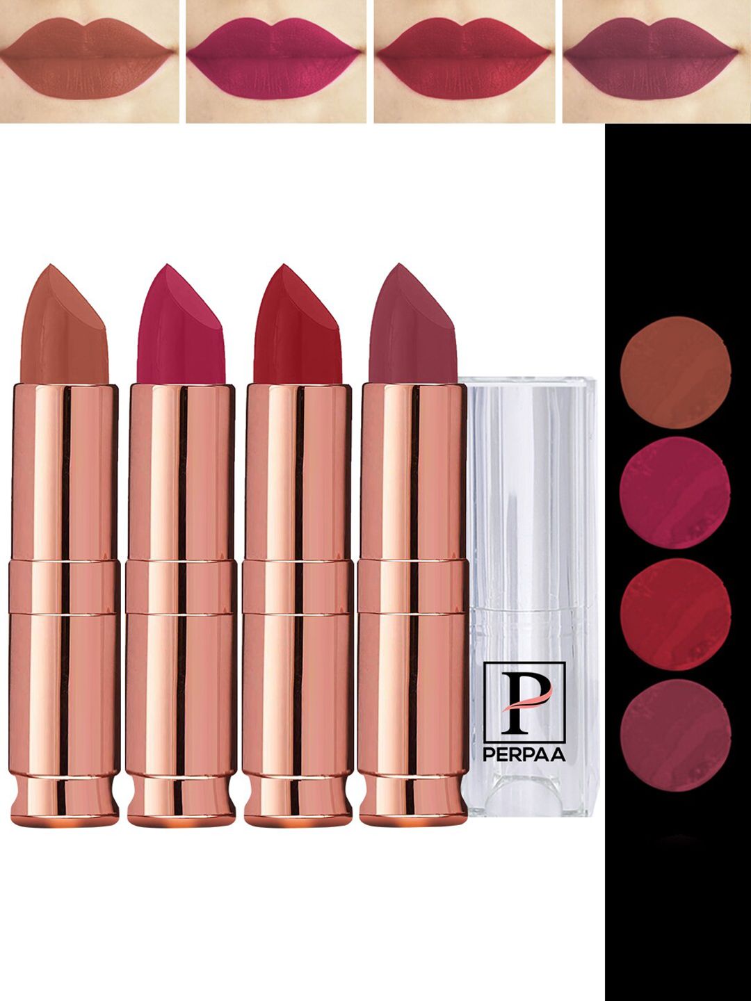 PERPAA Set Of 4 Antique Velvet Matte Lipstick Jojoba Oil & Butter-3.5gm Each-80-84-86-111