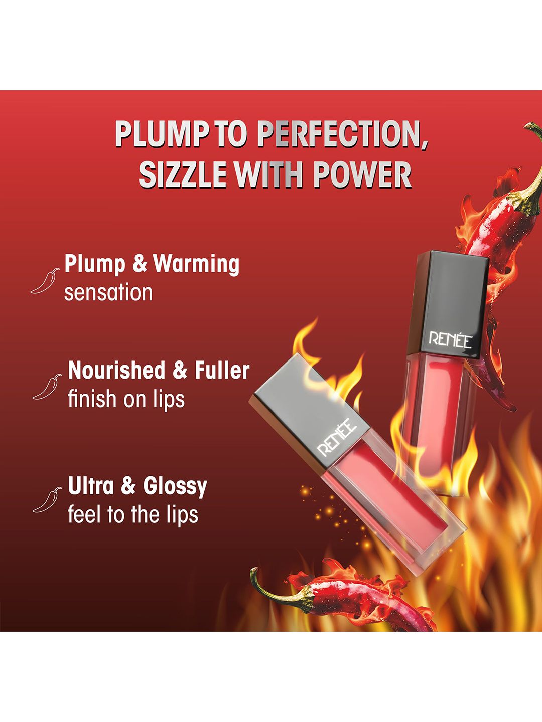 Renee Hot Sauce Long Lasting Plumping Lip Gloss With Jojoba Oil - 3 ml - Peachy Paprika