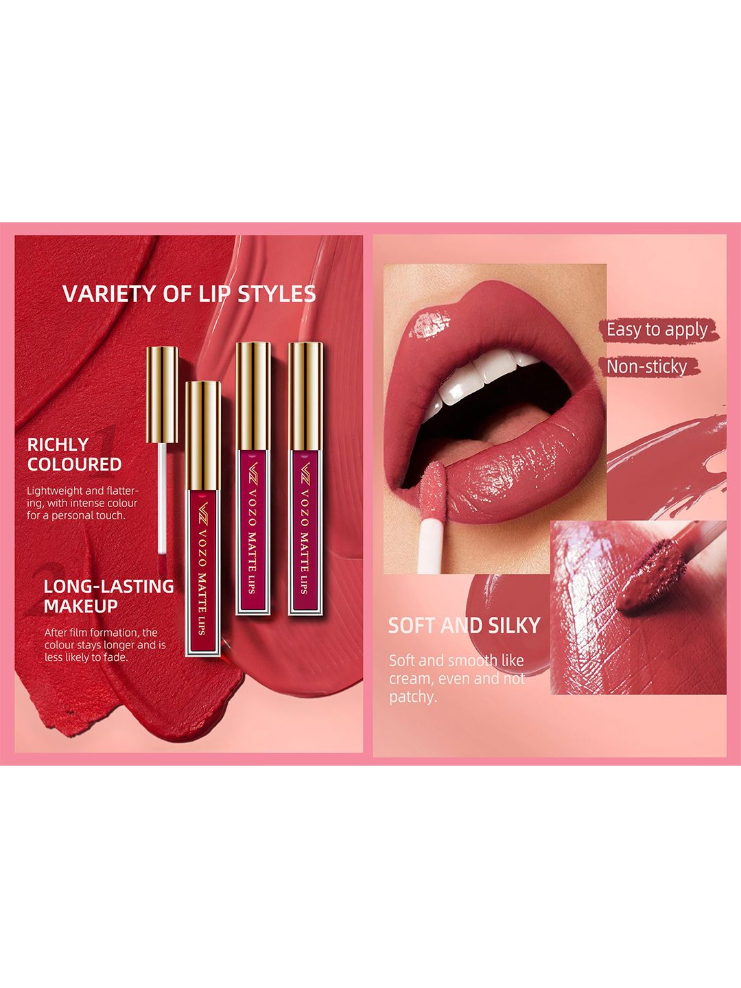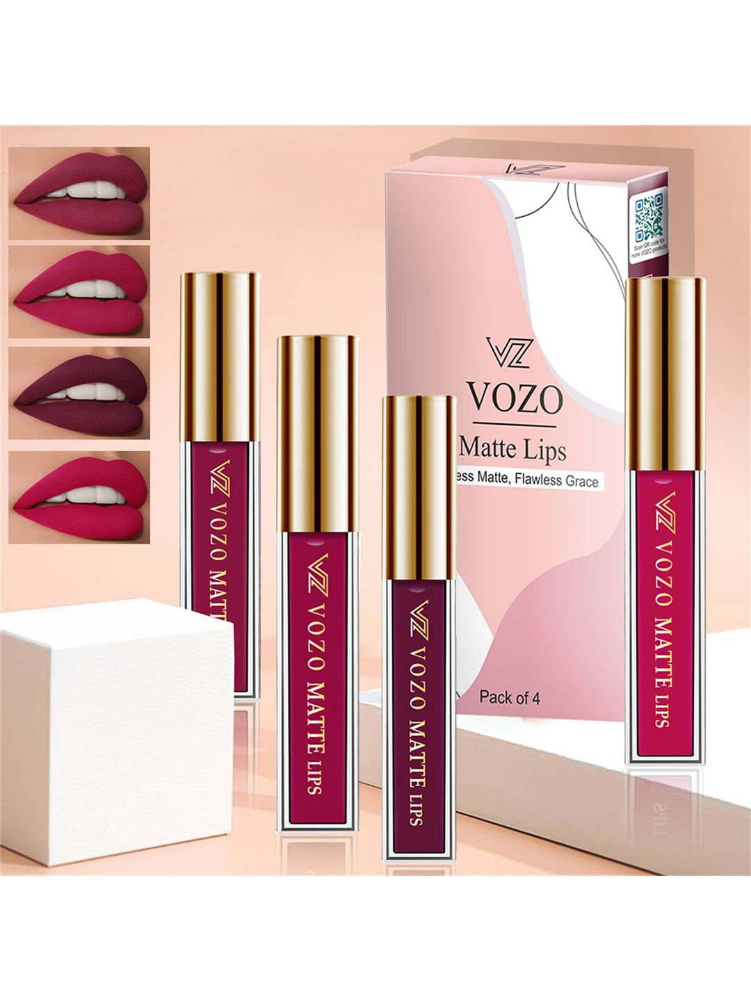 VOZO Set Of 4 Matte Lips Liquid Lipstick 4 ml Each Shade 101-106-201-204