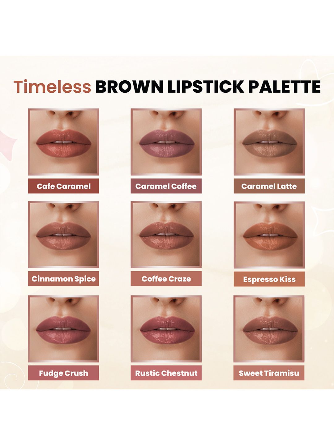 Baked Beauty Set Of 9 Liquid Matte Lipstick With Jojoba Oil - 1.5 ml Each - Brown Palette
