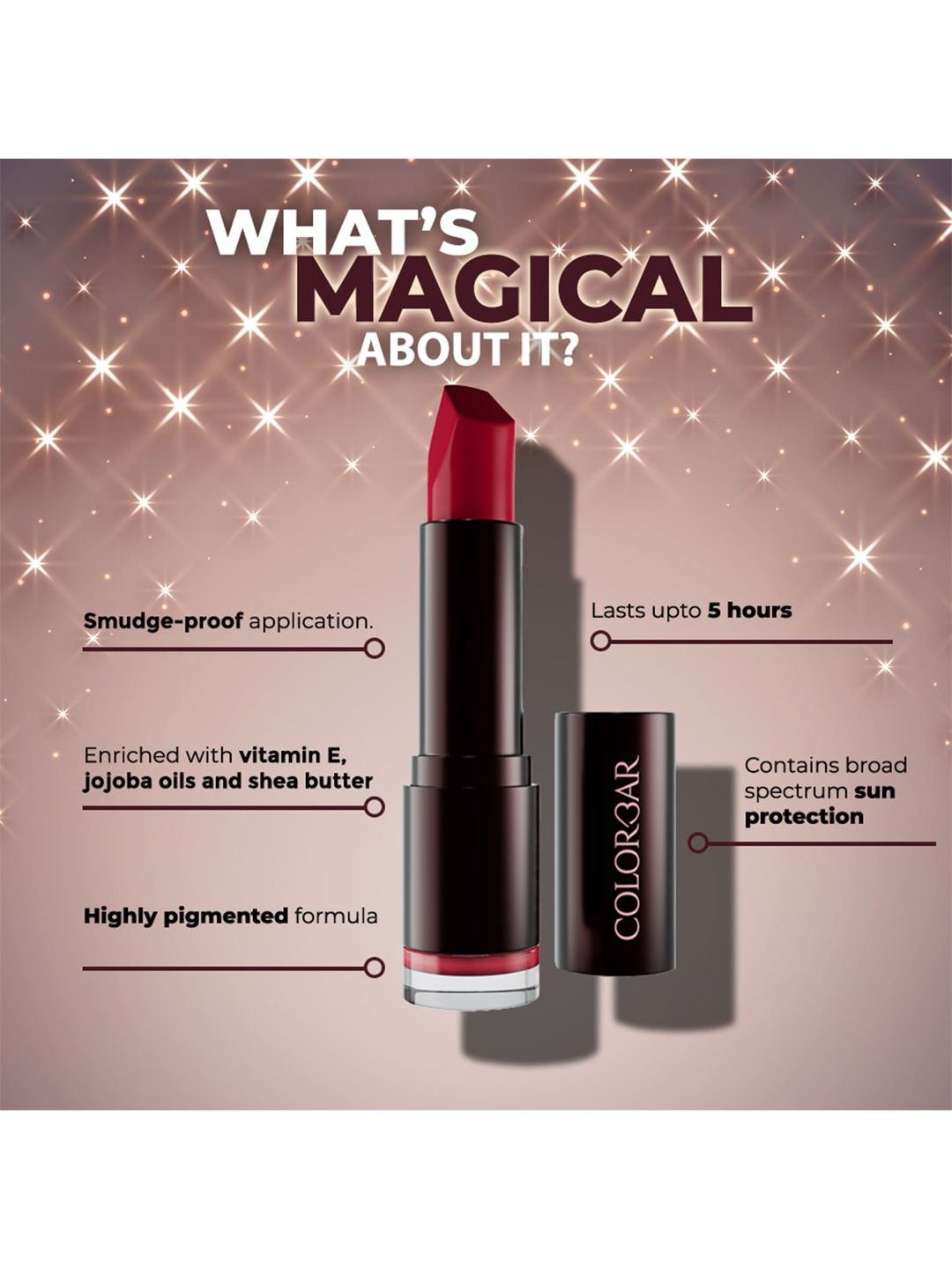 Colorbar presents this elegant Red Lipstick crafted for Women. Made using premium Not Available, this outfit features a refined Not Available silhouette, a stylish Not Available neckline and Not Available. The Not Available hemline and Not Available length complete the look. Perfect for Not Available wear.