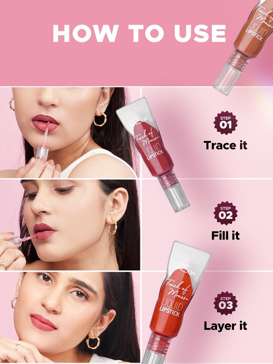 Hilary Rhoda Touch Of Mousse Matte Finish Waterproof Liquid Lipstick - 5ml - Shade- 04