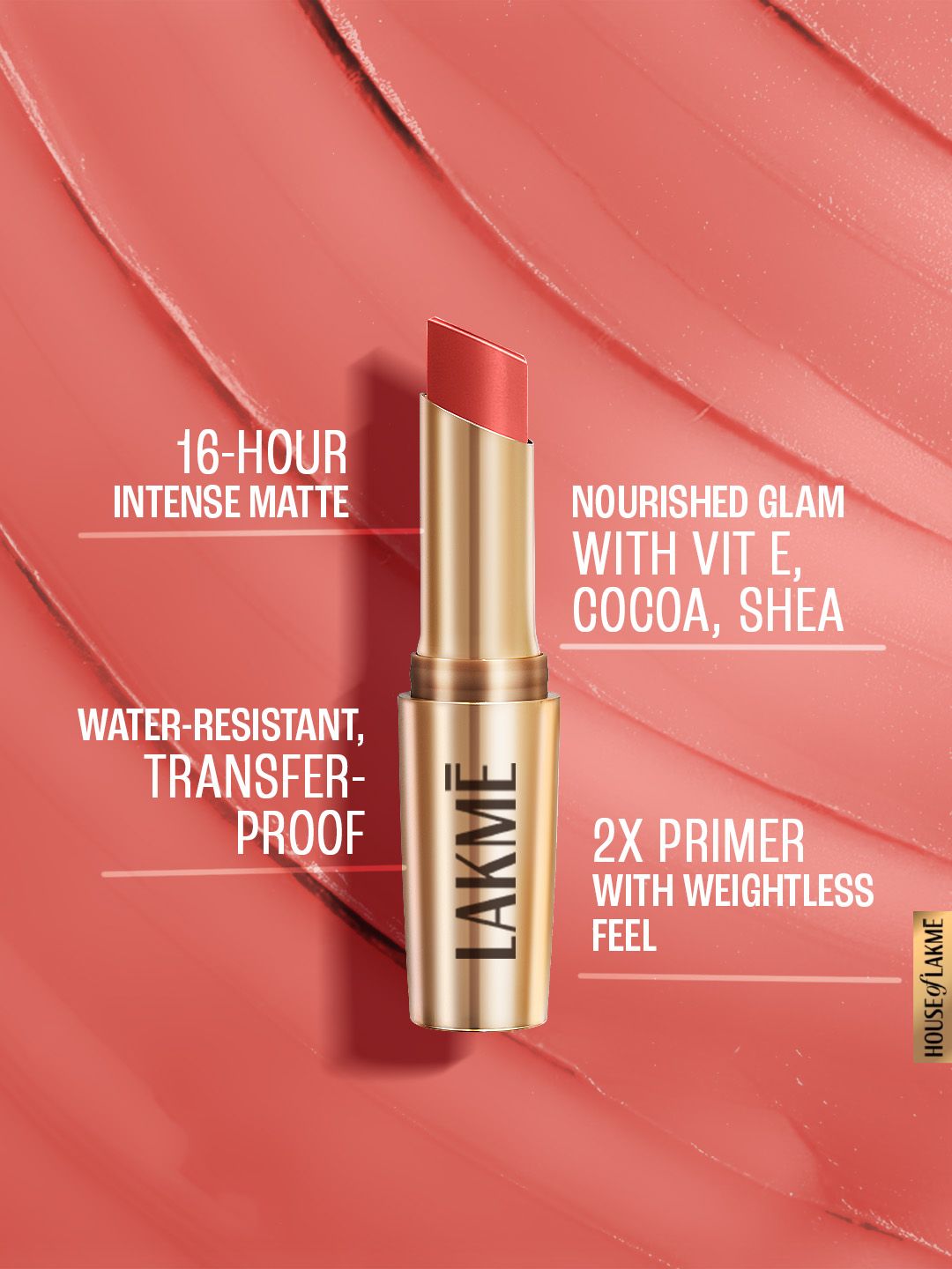 Lakme 9to5 Powerplay Priming Matte Lipstick With Vit E Lasts 16Hr 3.6g - Coral Date
