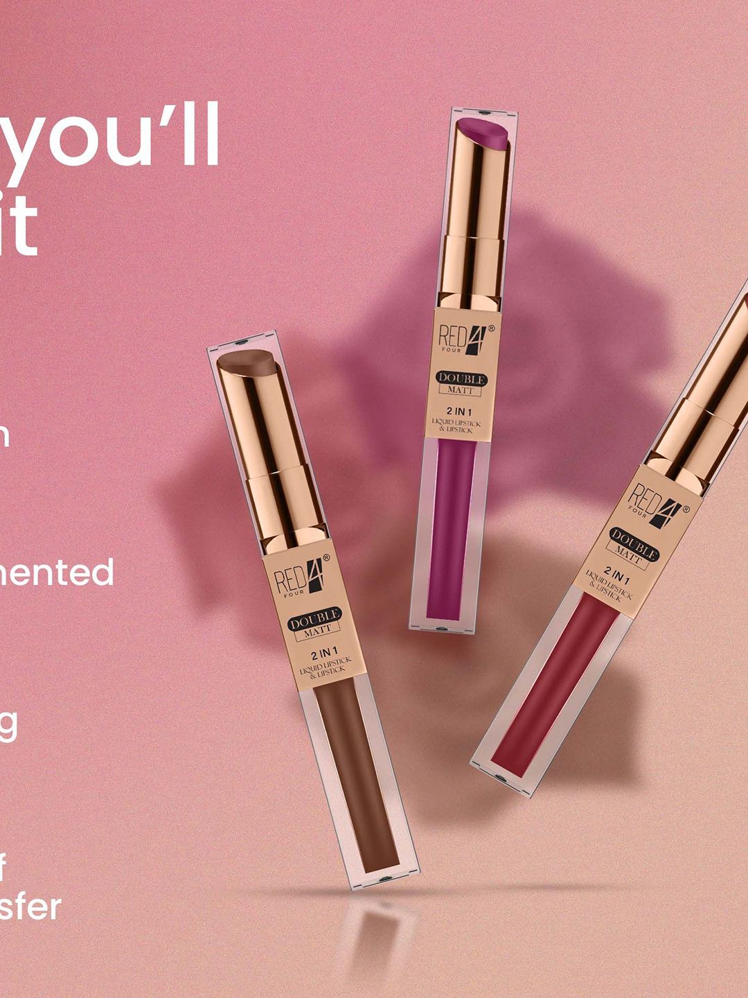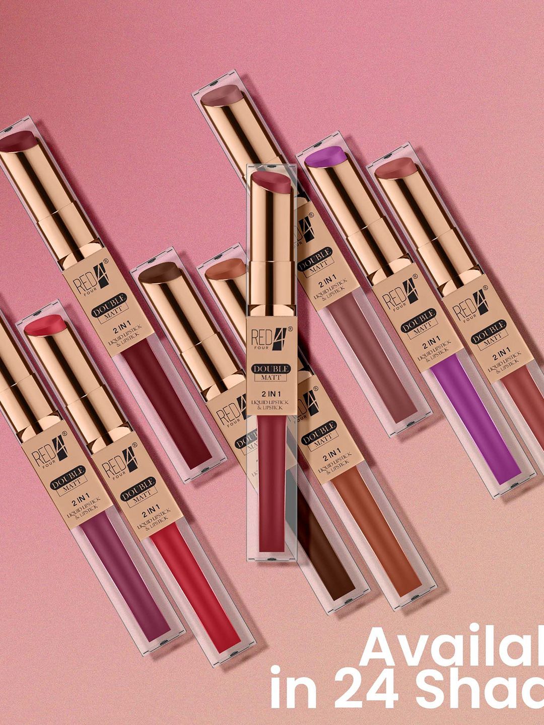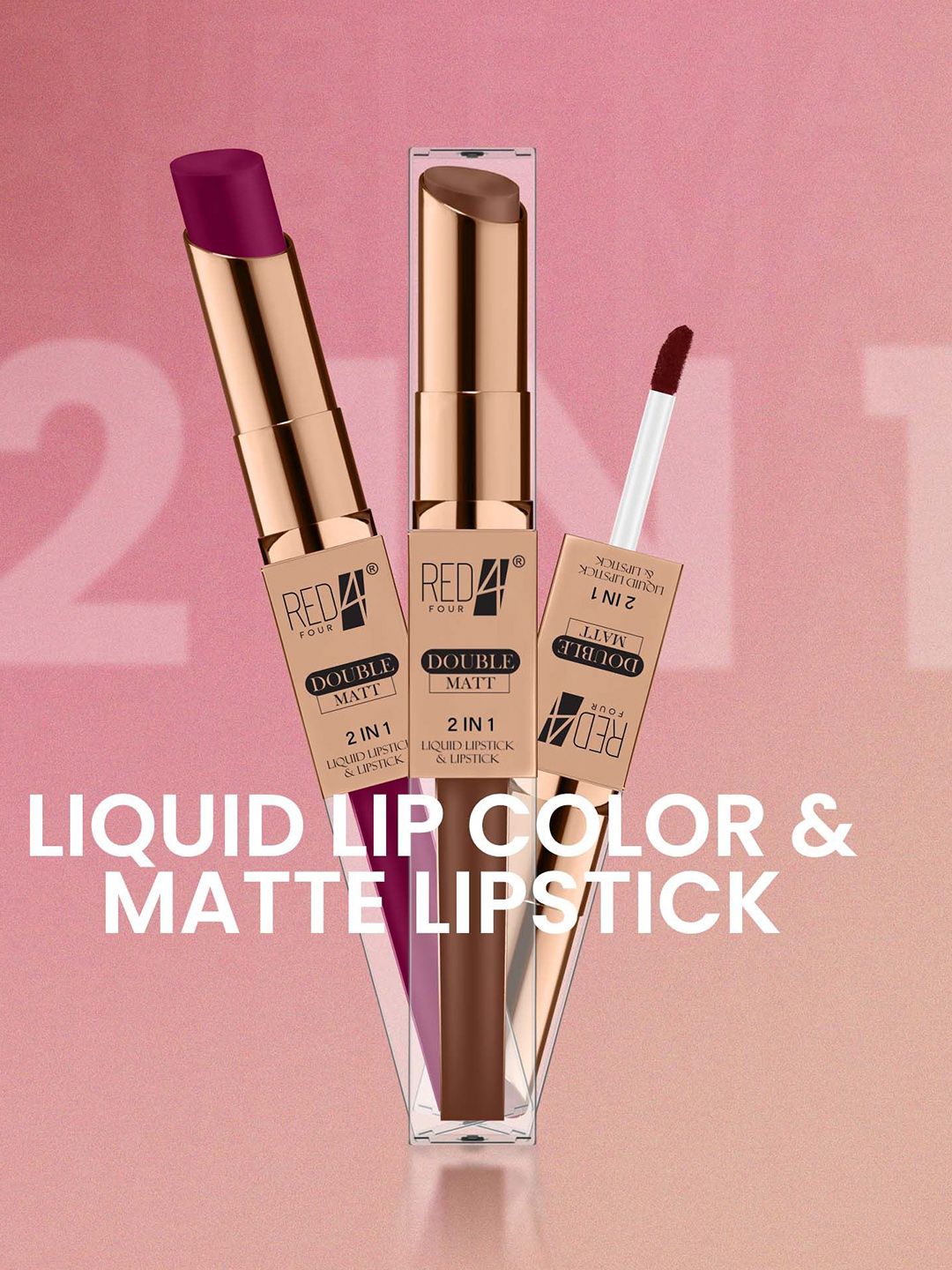 RED 4 Double Matt 2 In 1 Long Lasting Liquid Lipstick - 8 g - Shade - 130