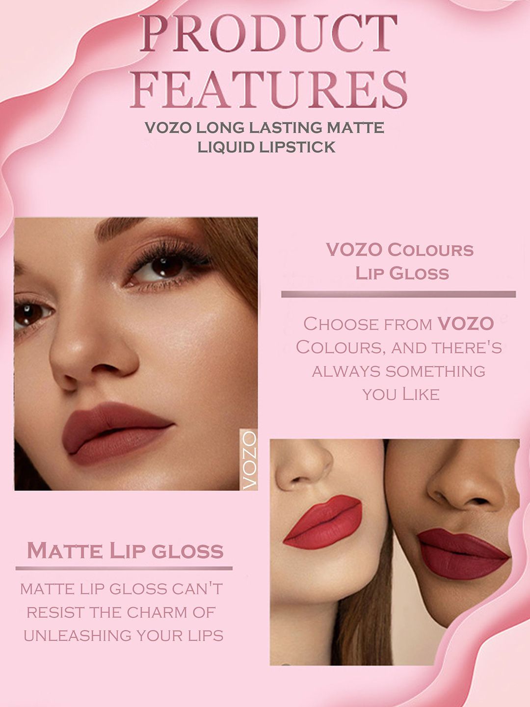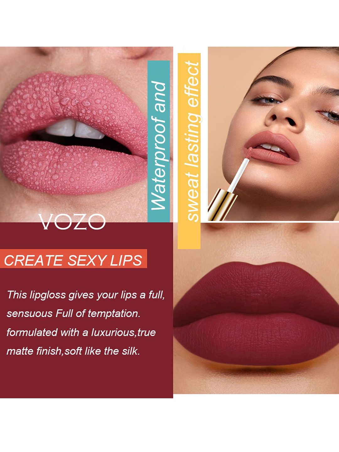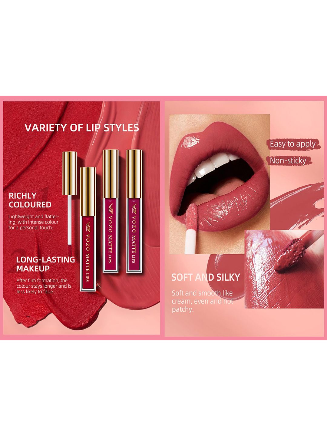 VOZO Set Of 2 Stay-All-Day Matte Liquid Lipstick 4 ml Each -Light Magenta106-Wine201